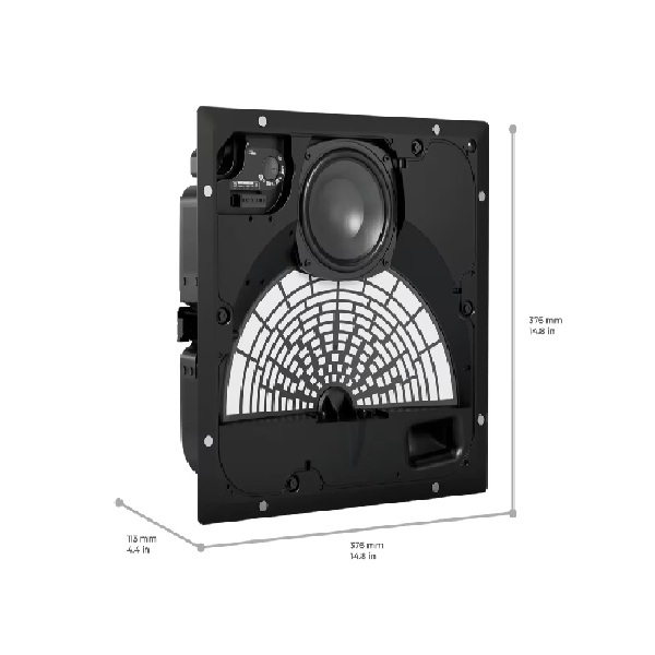 - Product Dimensions (H×W×D) 339 mm × 339 mm × 100 mm (13.4 in × 13.4 in × 3.9 in) enclosure / 390 mm × 390 mm × 13 mm (15.4 in × 15.4 in × 0.5 in) grille flange