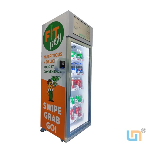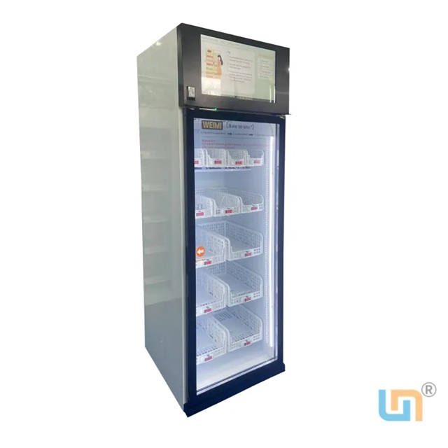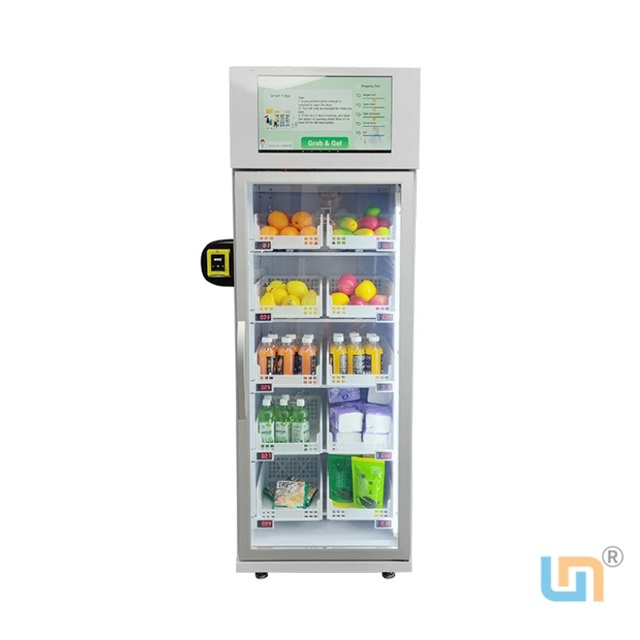 Compare to traditional vending machine, snack and drink in the smart fridge vending machine won’t be stucked and dropped, you just put the goods in any ways you like, no restrictions, so when the customer buy a soda drink, the drink will not spray out, smart firdge vending machine is the best shopping experience for customers. Smart fridge vendingmachine has cooling system. You can use smart fridge vending machine to sell whatever you like, such as fruits, vegetables, frozen meat, ice cream, beer, wine, and it’s easy and flexible to change or replace products, and you can sell by KG or sell by Piece, Smart fridge vending machineing machine can offer the best shopping experience, it only need 4 steps and 10 minutes to buy a drink——Tag your card(bank card, credit card)to open vending machine’s door, select what product you want, grab it and go.