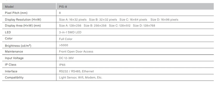 - Pixel Pitch (mm) 8