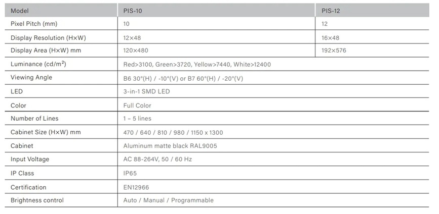 - Display Resolution (HxW) 12×48 / 16×48